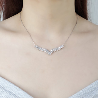 精簡俐落的V形線條設計,典雅得體不失高貴感;適合穿著長款或方形領口的禮服,再配搭排鑽手鏈及簡約垂吊耳環,締造層次感。